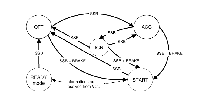 Управление внешними реле для переключения клемм ACC / IGN1 / IGN2 и STARTER без использования механического выключателя зажигания.