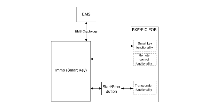 Функция иммобилайзера за счет связи НЧ транспондера между брелоком и кнопкой запуска/остановки.
