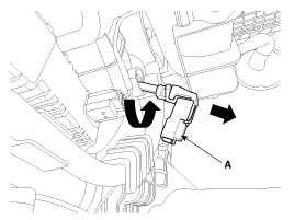 Снимите датчик температуры испарителя (А), вытащив его, повернув на 90° против часовой стрелки.