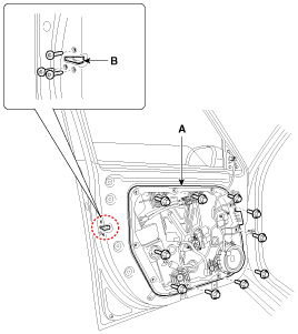 Ослабив крепежные болты, снимите модуль передней двери (А).