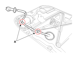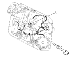Отсоедините разъемы и жгут проводов модуля передней двери (А).