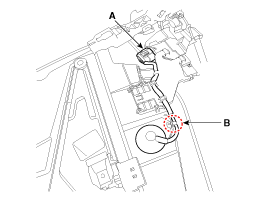 Отсоедините разъем замка передней двери (А) и снимите монтажный зажим (В).
