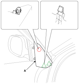 С помощью отвертки или съемника снимите внутреннюю крышку квадранта передней двери (А).