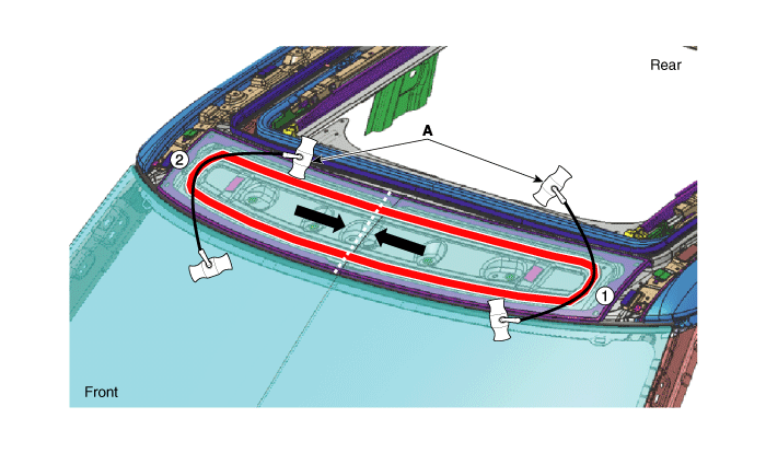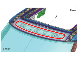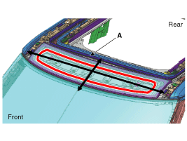 Проверьте шаг и зазор до того, как переднее стекло (A) будет полностью установлено.