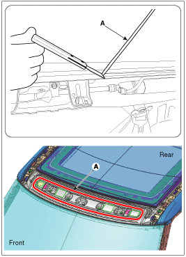 Используйте лезвие, чтобы срезать остатки герметика (A) вокруг панели кузова.
