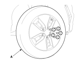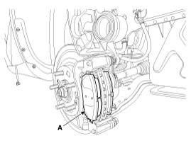 Снимите переднее колесо и шину (А) с передней ступицы.
