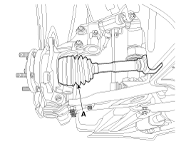 Отсоедините приводной вал (А) от передней ступицы в сборе.