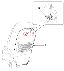 Вытяните крючки (А) из каркаса спинки переднего сиденья.