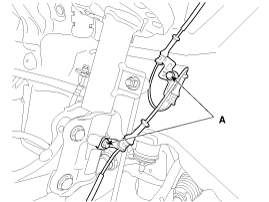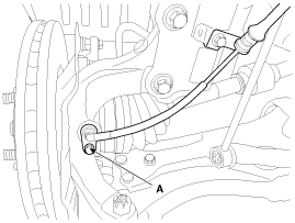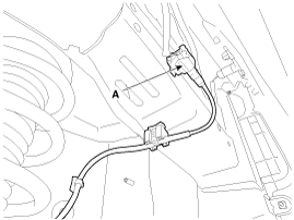 Отсоедините разъем датчика скорости переднего колеса (А).