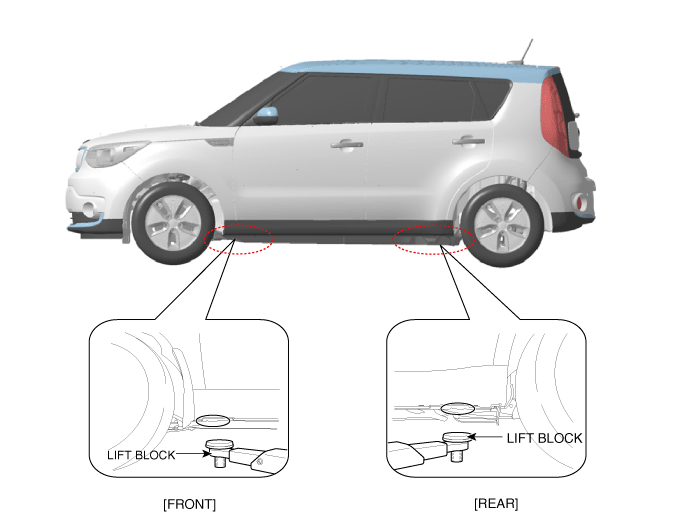 Поместите подъемные блоки под точки опоры, как показано на рисунке.