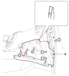 Снимите зажим крепления кожуха перчаточного ящика (А).