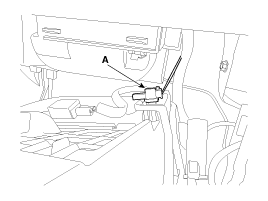 Отсоедините разъем лампы освещения вещевого ящика (А).