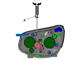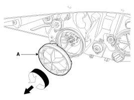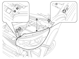 Ослабьте болты крепления (3EA) фары. Снимите фару в сборе (В) после отсоединения разъемов фары (А).