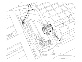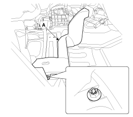 Отсоедините разъем (А) модуля управления подушками безопасности (SRSCM).