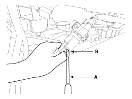Снимите блок высоковольтного нагревателя PTC (A) после ослабления крепежных винтов.
