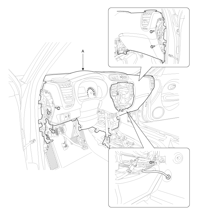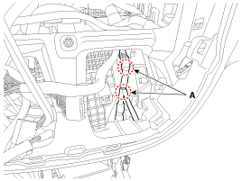Снимите зажимы крепления распределительной коробки в салоне (А).