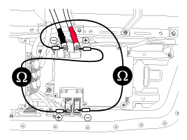 После подключения положительной (+) клеммы к отрицательной (-) клемме аккумулятора измерьте сопротивление следующим образом.