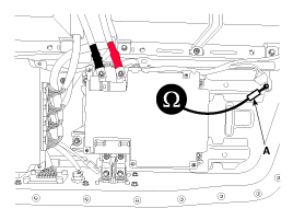 Подсоедините положительную (+) клемму к клеммам высоковольтной батареи (+, -) для измерения сопротивления.