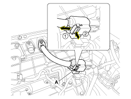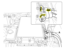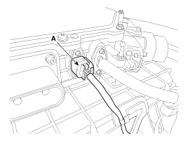Отсоедините высоковольтный разъем (А) компрессора кондиционера.
