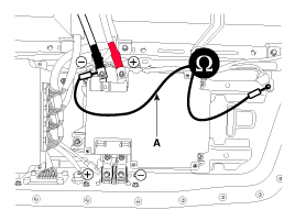 После подключения положительной (+) клеммы к отрицательной (-) клемме аккумулятора измерьте сопротивление следующим образом.