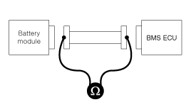 Измерьте сопротивление изоляции между жгутом аккумуляторного модуля и нижней частью корпуса.