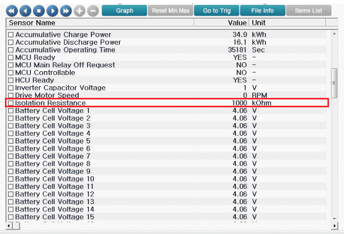 Состояние изоляции между автомобилем и аккумуляторной батареей можно проверить с помощью GDS или измерения сопротивления.