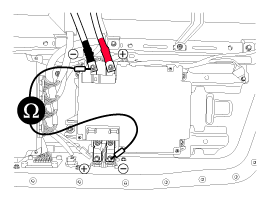 Проверьте главное реле высокого напряжения (-) с помощью мультитестера, когда реле выключено.