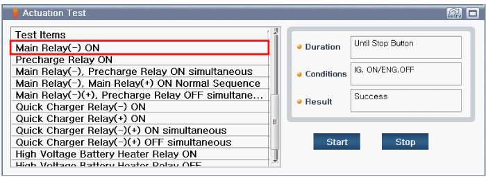 Активируйте главное реле (-) с помощью «Проверки срабатывания» на GDS, как показано на рисунке ниже.