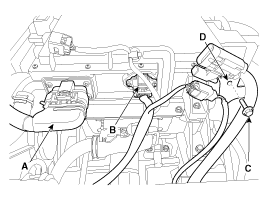 Отсоедините разъем кабеля OBC (A) и разъем сигнала OBC (B).