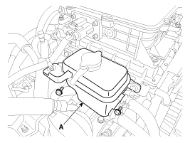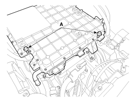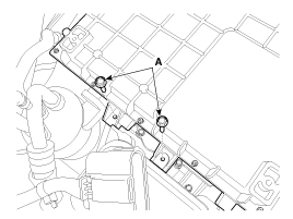 Ослабьте болт крепления аккумулятора кондиционера (А). (с тепловым насосом)