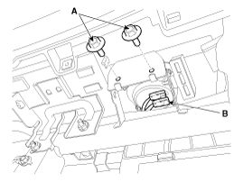 Выверните крепежные болты из подушки безопасности, а затем снимите подушку безопасности пассажира (А).