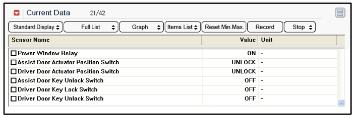системы электростеклоподъемников. В этом меню отображается состояние входа/выхода SJB.