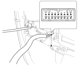Отсоедините разъем (А) от модуля переключателя стеклоподъемников.