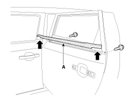 Ослабив крепежные винты, снимите ремень задней двери снаружи уплотнителя (А).