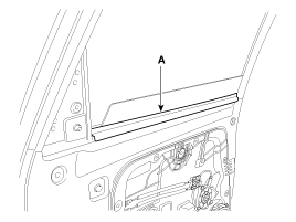 Снимите заглушку отверстия крепления стекла задней двери (А).