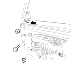 Слегка нажмите на канал задней двери в направлении стрелки на рисунке ниже.