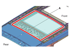 Проверьте ступеньку и зазор до того, как заднее стекло (A) будет полностью установлено.
