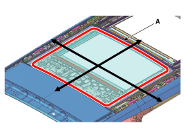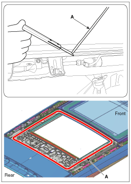 Используйте лезвие, чтобы срезать остатки герметика (A) вокруг панели кузова.