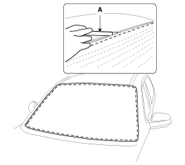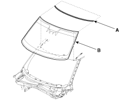 Снимите ленту с молдинга ветрового стекла (А) и установите молдинг на ветровое стекло (В).