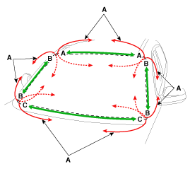Отрежьте герметик на (A-A), (B-B) и (C-C), потянув рояльную проволоку (A) влево и вправо.