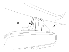 Нажмите на основание зеркала ECM вверх, чтобы снять зеркало ECM в сборе (A).