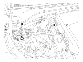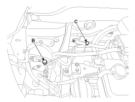 сервисный порт (B) и сервисный порт низкого давления (C), как показано,