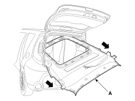 Снимите обивку крыши в сборе (А) с автомобиля через заднюю дверь.