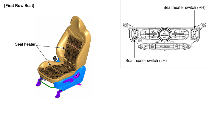 Принципиальные схемы обогревателя сиденья (без вентиляции)