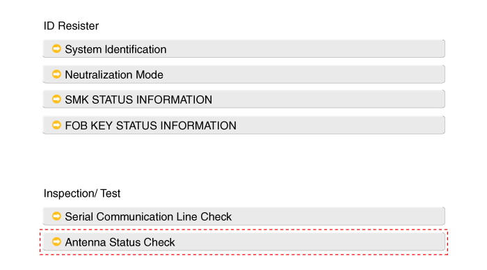 После IGN ON выберите «SMK STATUS INFORMATION».