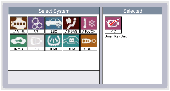 Выберите модель автомобиля, а затем систему SMART KEY.