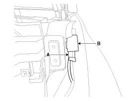 Снимите блок смарт-ключа (В) после отсоединения разъема (А) от блока смарт-ключа.