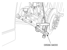 Снимите шаровой шарнир наконечника рулевой тяги (C) с поворотного кулака с помощью SST (09568-34000).