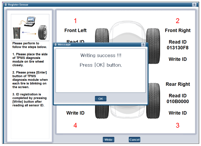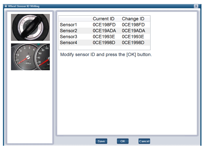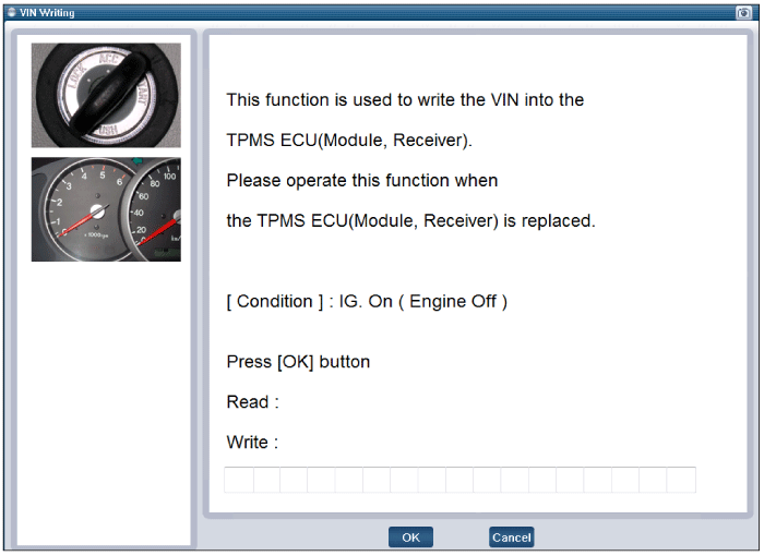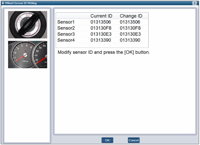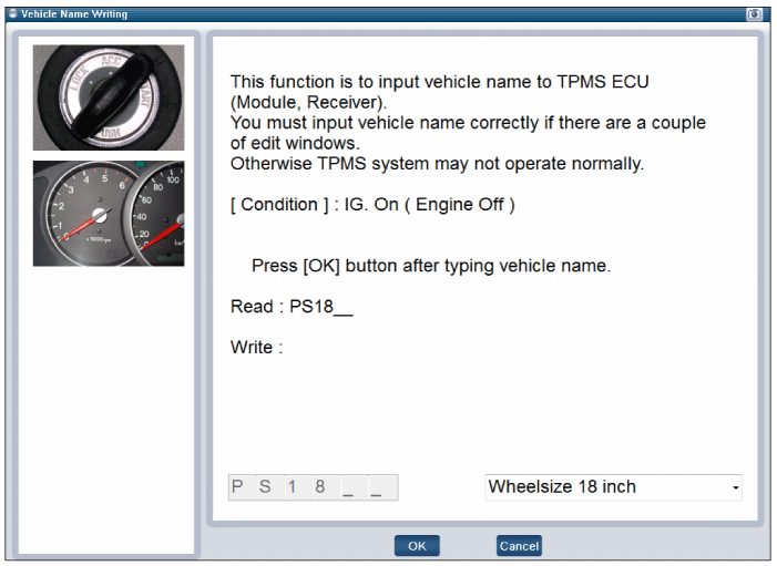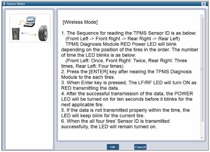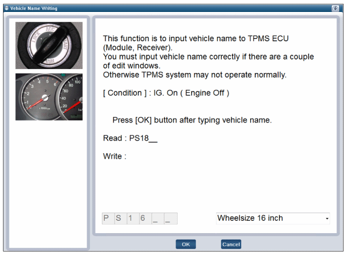 Выберите «модель автомобиля» и «TPMS» на экране выбора автомобиля GDS, затем нажмите «ОК».