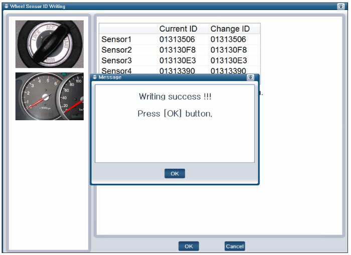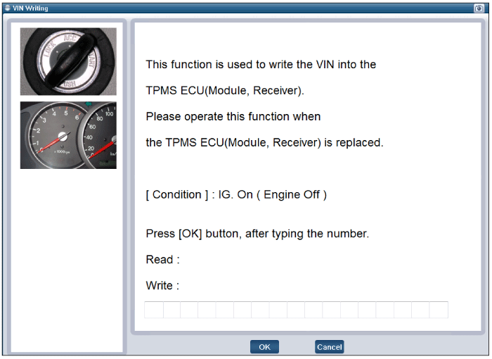 Выберите «модель автомобиля» и «TPMS» на экране выбора автомобиля GDS, затем нажмите «ОК».